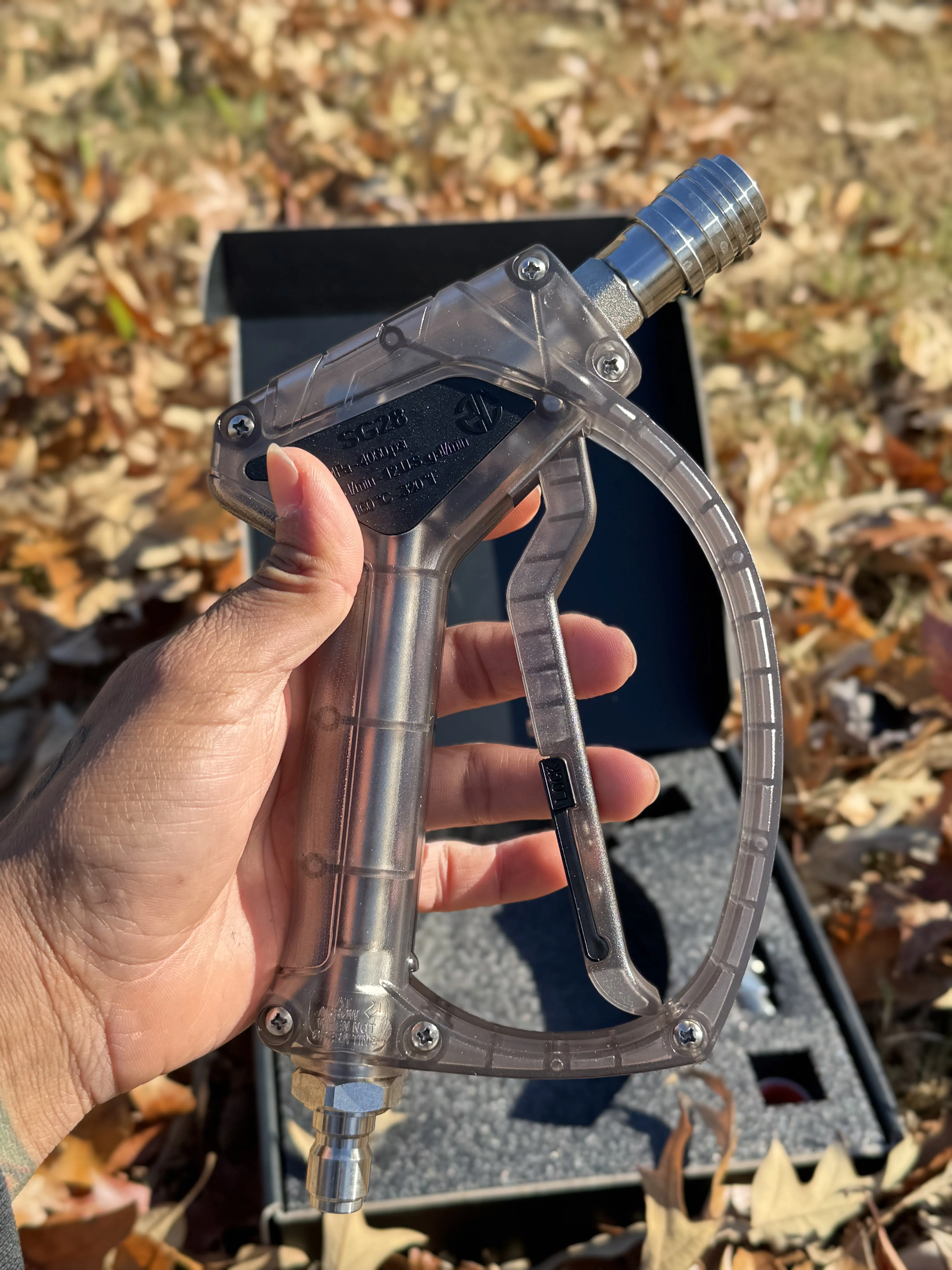 The newly engineered spray gun with an integrated swivel sets a new standard for easy-hold performance. Featuring shock-resistant reinforced plastic ribbing across the entire housing, it offers superior pipe support and hand protection. Combined with a built-in, low-profile stainless steel live swivel, this spray gun boosts cleaning efficiency and extends operation time—thanks to its advanced Easy Hold technology